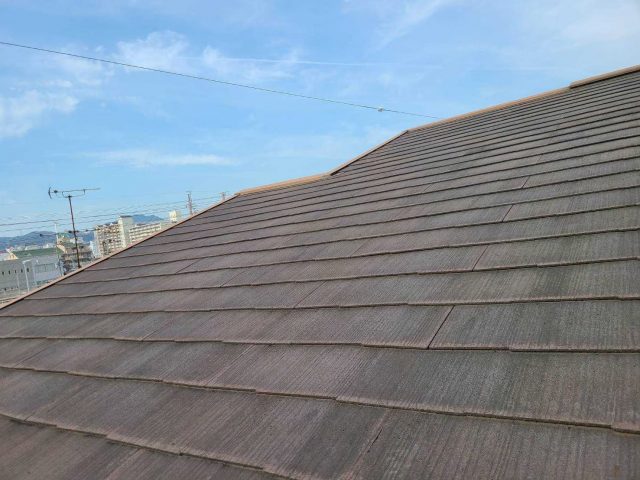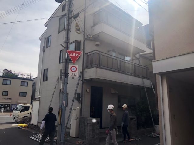 今回はサイディングの塗装工事とベランダ部分の防水処理、屋根の塗装工事でご依頼頂き約3週間の工期で仕上げました。3週間の工期といっても皆さんご存じのとおり塗装工事でやっかいな事は天候です。雨が降れば塗装工事は止まってしまうので実際のところ大幅に工期が伸びることもあり、そこは神経を使う所でもあります。役所へ足場の為の道路許可を申請しているにも関わらず雨続きでは余分目にみていた期間を過ぎてしまうことも稀ではありません。お天気を考えながら着工日を決めることももちろん大切な施工管理のお仕事なんです。