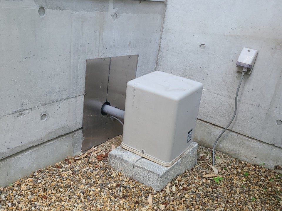 ブローバス(ジェットバス)は浴槽の側面からブロー(気泡)を含んだ水流を発生するお風呂なので野外にポンプユニットが設置されていました