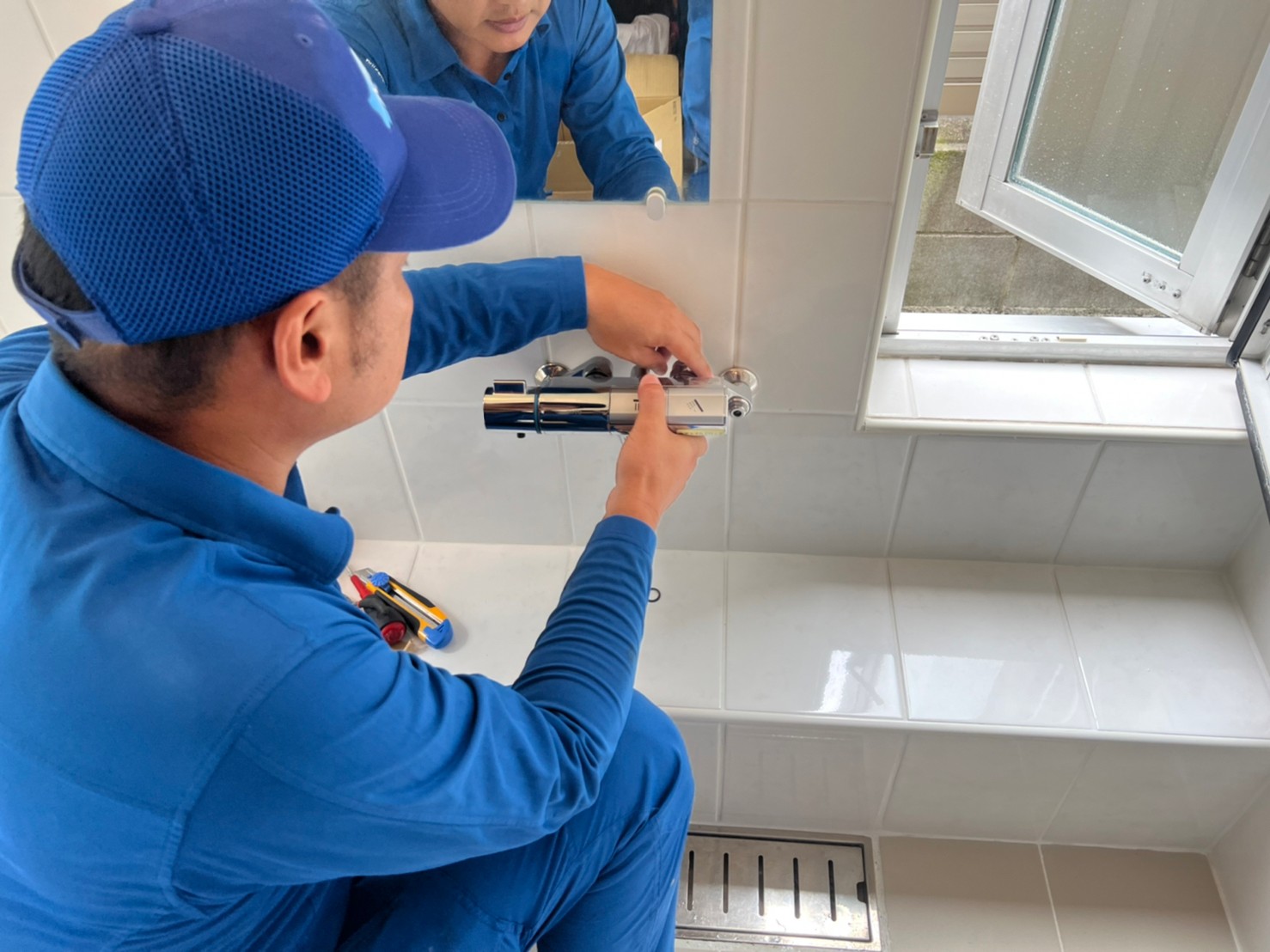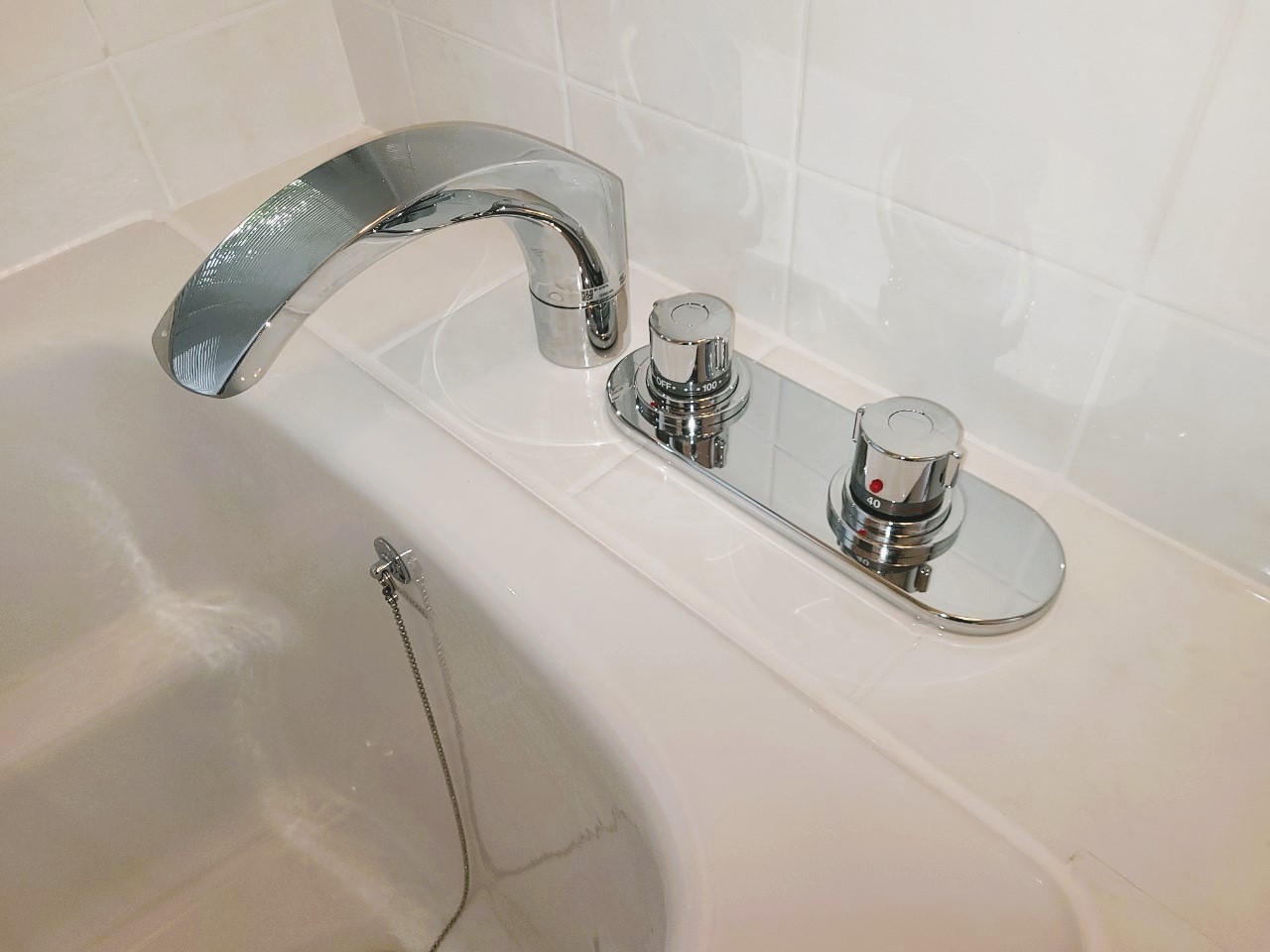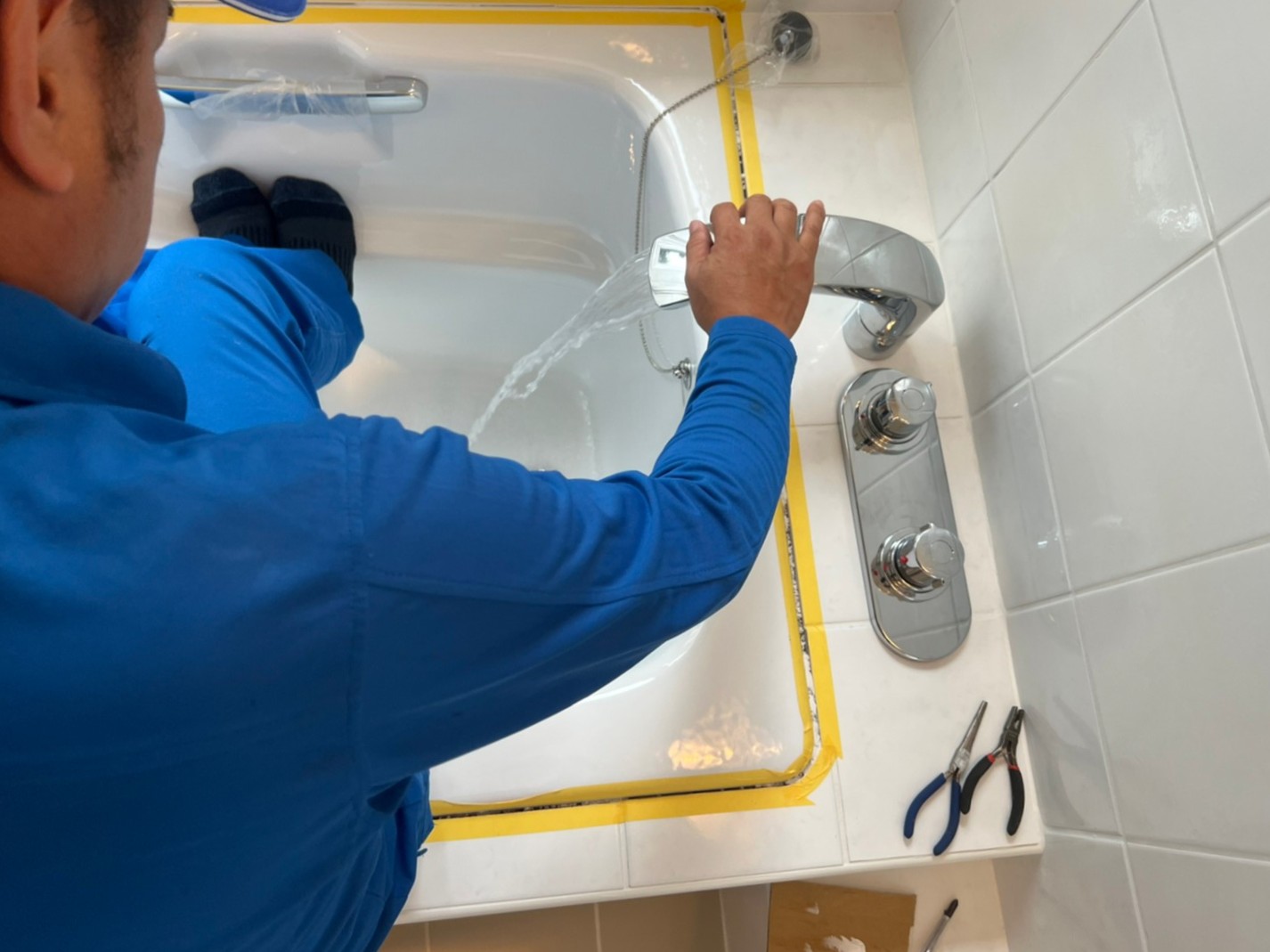 新しい水栓を取付け、お湯・水が問題なく出れば設置完了