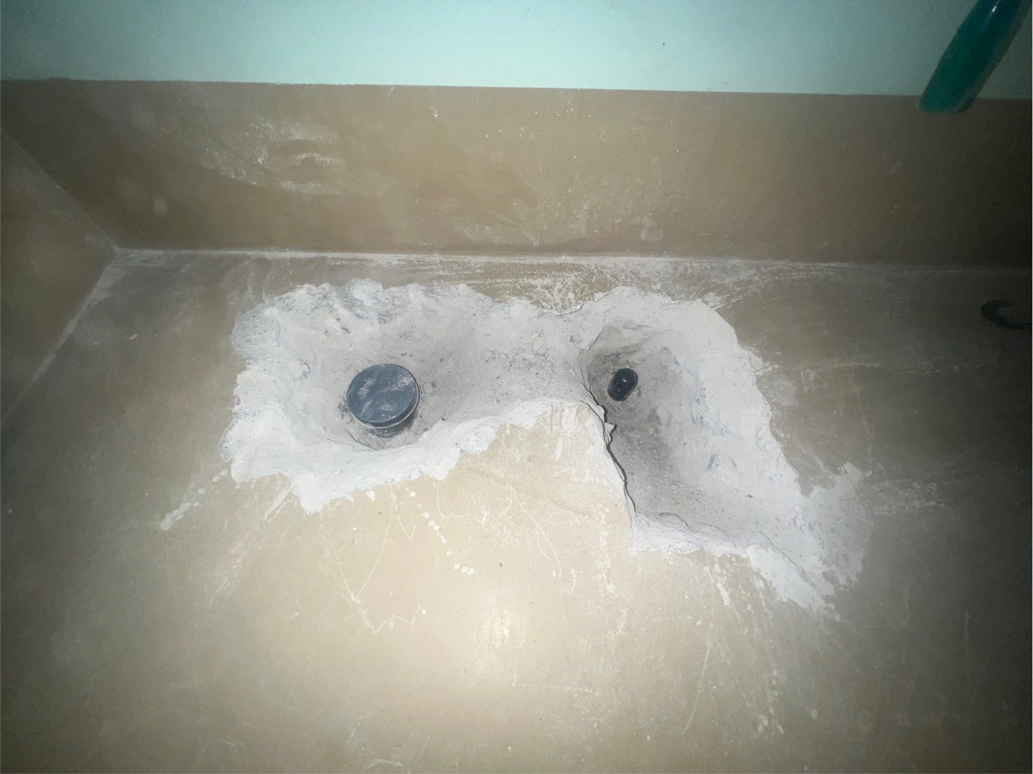 斫り作業で穴を開け、管を切断し埋めてしまいます