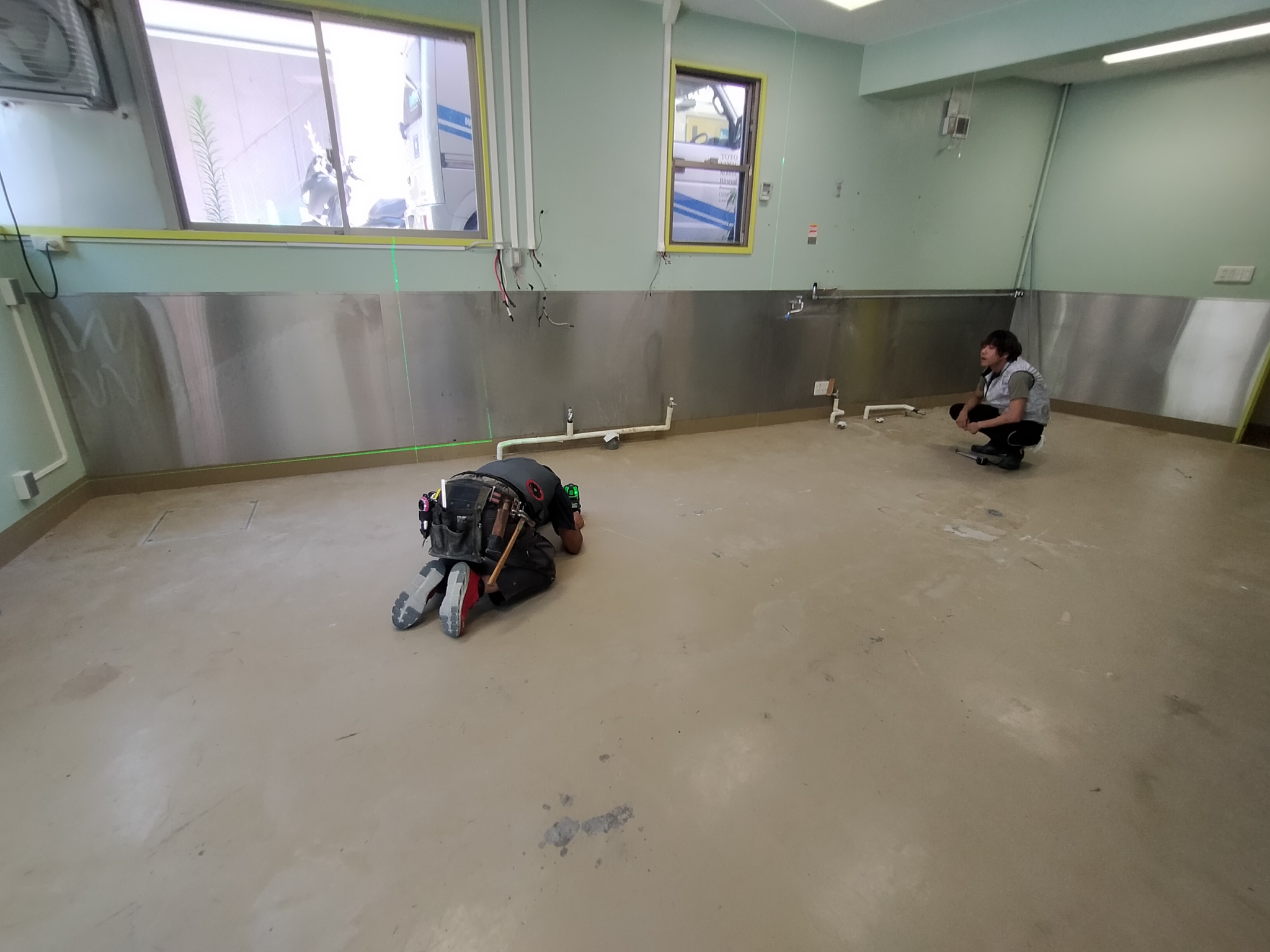 店内をレーザー墨出し器を使い必要な寸法を測定しました