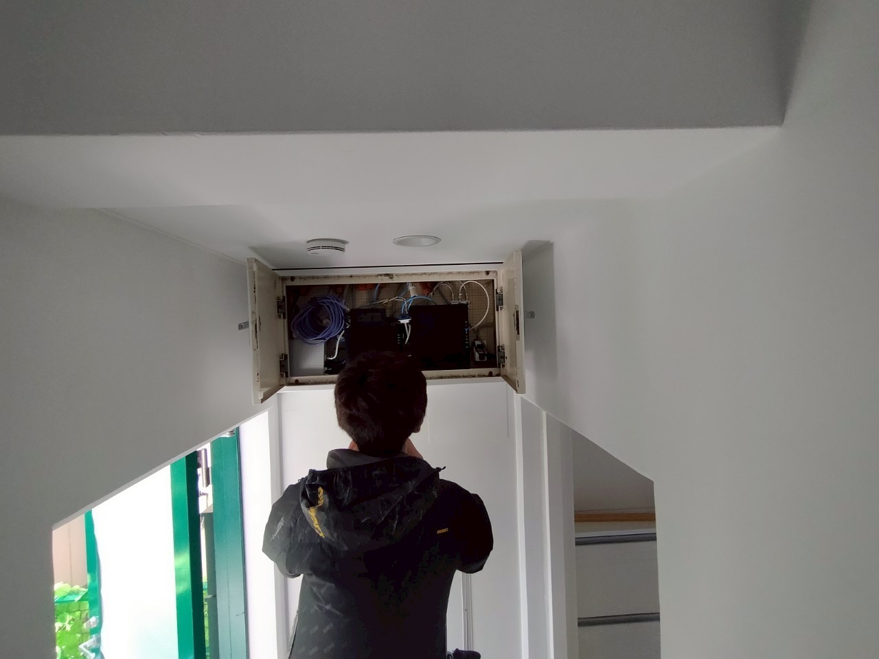 まずは電気配線を整える為、天井の上にある既存の配線を調べます