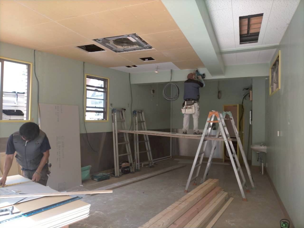 新しく天井にコンパネを設置します